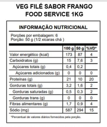 INGREDIENTES: Água, óleo vegetal, fibras vegetais, extrato levedura, proteínas de ervilha, cebola em pó, metilcelulose, sal, aroma chicken flavor, maltodextrina de milho, alho desidratado, amido de milho modificado, e especiarias. Sorbato de potássio, goma guar.